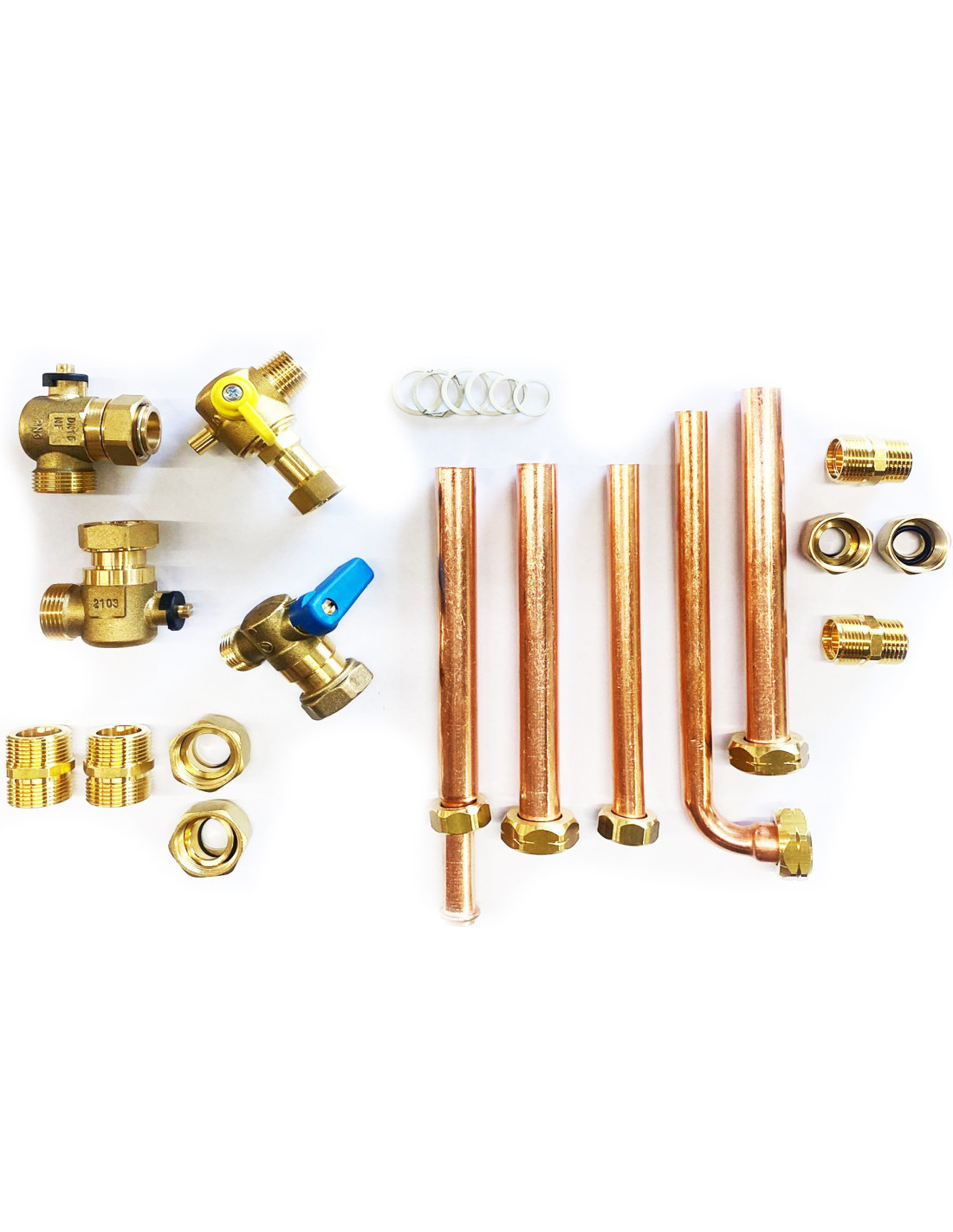 KIT RACCORDI IN LINEA CON RUBINETTI Il set è perfettamente abbinabile con la CALDAIA MICRA 4 - SEMIATEK 4 - THEMAFAST 4